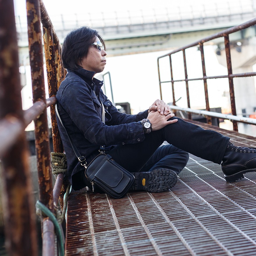 上質でかつ重厚な牛革を丹念に作り込まれたショルダー&ヒップバッグ!手作り感溢れる雰囲気を持つ仕上がり!ショルダーベルトをはずしてフックをベルトループに着用できヒップバッグとして腰回りをオシャレにします。