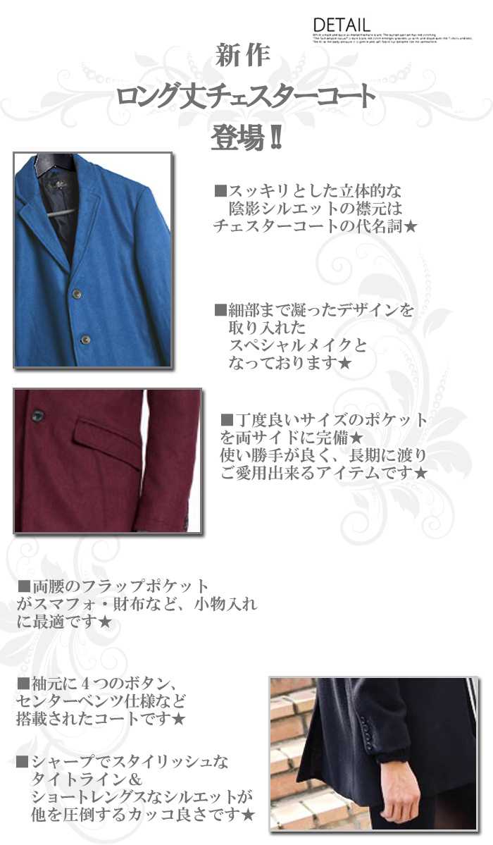 メンズ コート チェスターコート 送料0円 チェスター ジャケット ブラック ブルー ワイン ネイビー カジュアル 新作 長袖 大きいサイズ M L XL 2021