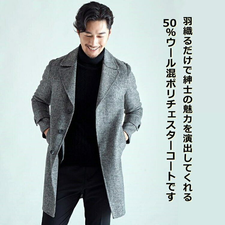 商品詳細 特徴 ●精悍な雰囲気を演出したウールコートで、秋冬シーズンにぴったりののロング丈 チェスターコートです。