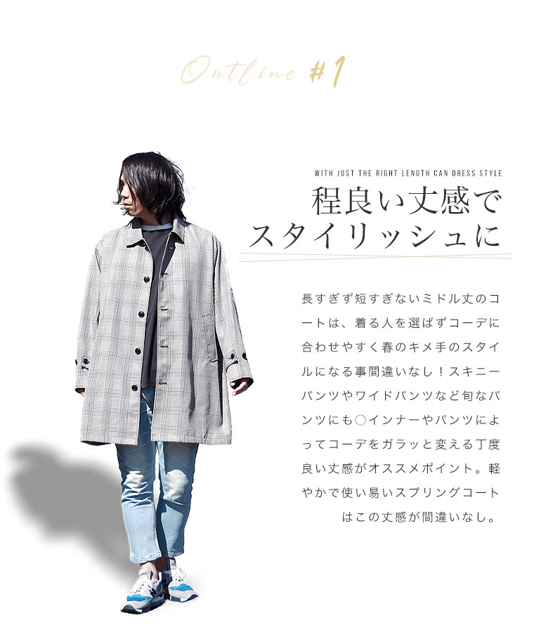 オン/オフともに活躍する万能コートはスタイリングの幅を広げてくれます! MODEL JYOJI 身長:172cm 体重63kg 着用サイズ:L MODEL WAKA 身長:173cm 体重58kg 着用サイズ:L 【使用素材/ポリエステル65%、レーヨン35%】 サイズ 着丈 身幅 肩幅 袖丈 M 89 65 54 56 L 94 67 57 58 >>サイズの測り方はコチラ 注意事項 ※上記表は弊社にて採寸を行った【実寸サイズ】となります。