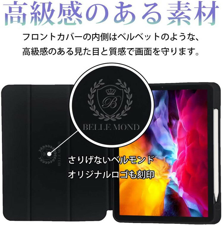 iPad Air 10.9 第4世代 2020 ケース【Apple Pencil 収納可能】 ペンホルダー付き スタンド機能付き 三つ折り 手帳型 全面保護 傷つき防止 オートスリープ対応 軽量 薄型 保護カバー【BELLEMOND(ベルモンド)】 iPad Air 10.9 ケース ブラック B0253 ネコポス