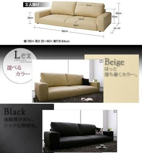フロアソファ【サイズ】3P(約)横幅182 (座面幅150) 奥行83 高さ54 cm【素材】生地:合成皮革中材:天然木・チップウレタン・ポリエステル綿・ウレタンフォーム・ 連結式鋼製組バネ・ウェービングベルト・合板【カラー】アイボリー、ブラウン、ブラック【生産国】中国※1年保証付き。